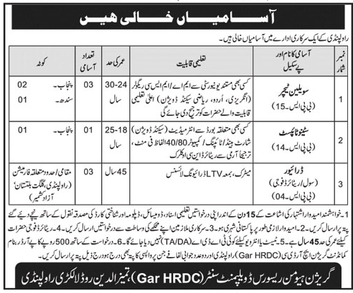 Jobs in A Government Sector Unit in Rawalpindi Positions Vacant