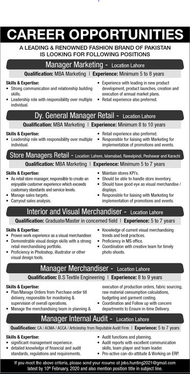 A Leading and Renowned Fashion Brand in Pakistan Career Opportunities