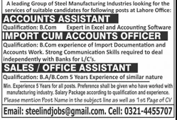 Jobs in A Leading group of Steel Staff Required