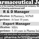 Jobs in A Leading Pharmaceutical Company Lahore Manager and Staff Required