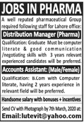 Jobs in A Leading Pharmaceutical Group in Lahore Staff Required