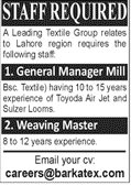 Jobs in A Leading Textile Group Staff Required