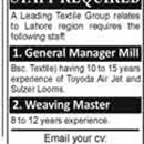 Jobs in A Leading Textile Group in Lahore Staff Required