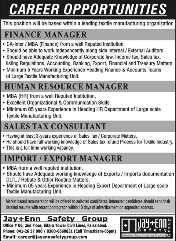 Jobs in A Leading Textile Organization Staff Required