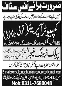 Jobs in A Private Institute Staff Required for Office Work