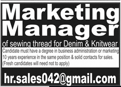 Job in A Private Marketing Company Manager Required
