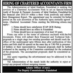 Job in A Public Sector Firm in Faisalabad Chartered Accountant Required