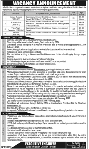 Jobs in A Public Sector Organization Swabi Staff Required