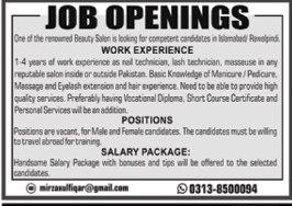 Jobs in A Renowned Beauty Salon Positions Vacant