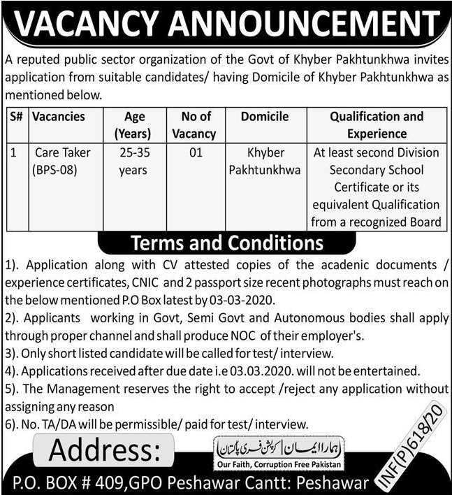 Job in A Reputed Public Sector Organization KPK Vacancy Announcement