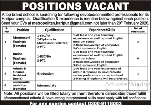 Jobs in A Top Brand School Positions Vacant