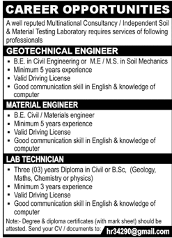 Jobs in A Well Known Material Testing Unit Staff Required