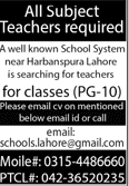 Jobs in A Well known School System Lahore Teaching Staff Required