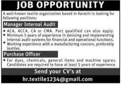 Jobs in A well known Textile Company Staff Required