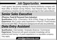 Jobs in A Well Reputed Chemical Company Positions Vacant