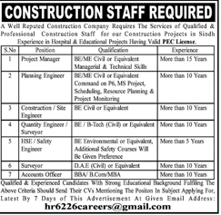 Jobs in A Well Reputed Construction Company Staff Required