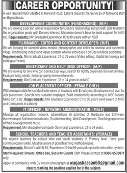 Jobs in A Well reputed NGO in Lahore Career Opportunity