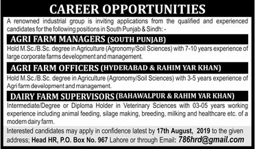 Agri Farm Managers, Officers and Supervisors Career (Jobs) Opportunities