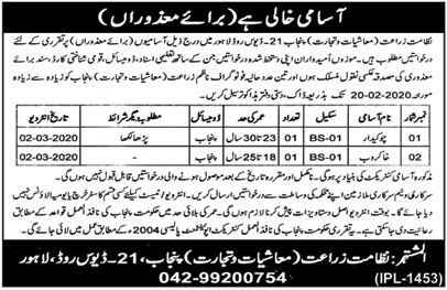 Jobs in Agriculture Department Punjab Lahore Staff Required For Handicap