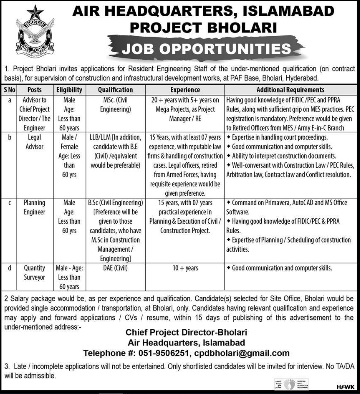 Jobs in Air Headquarter Islamabad Career Opportunity