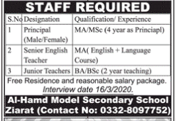 Jobs in Al Hamd Model Secondary School staff Required