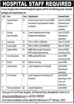 Jobs in Al Ihsan Hospital Rawalpindi Staff Required
