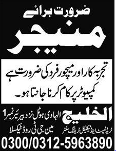 Al Kaleej Hadi Hotel Manager Required Expert on computer