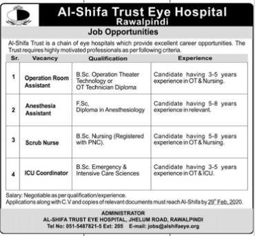 Jobs in Al Shafi Trust Eye Hospital Rawalpindi Positions Vacant