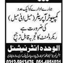 Jobs in Al Wahid International Computer Operator Required Male and Female