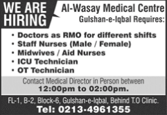 Jobs in Al-Wasay Medical Center Staff Required