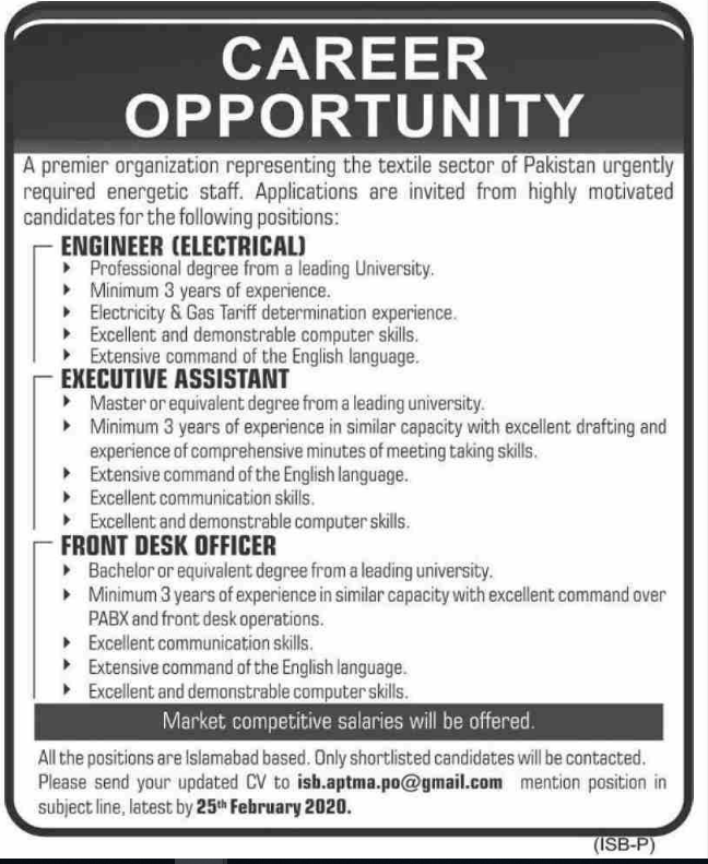 Jobs in All Pakistan Textile Mills Association Career Opportunity