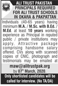 Job in All Trust Pakistan School Principal Required