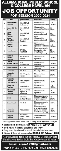 Jobs in Allama Iqbal Public School and College Positions Vacant