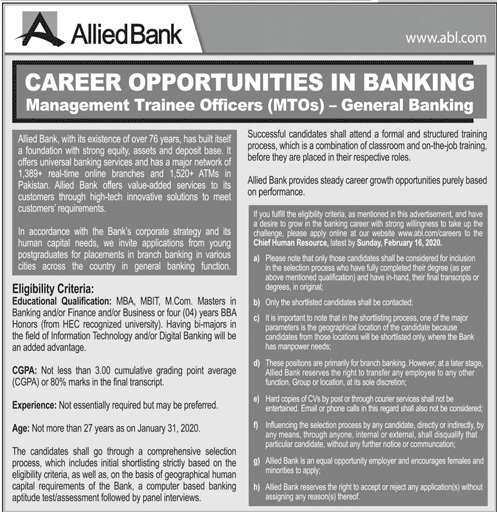 Job in ALLIED Bank Pakistan Position Vacant