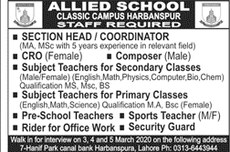 Jobs in Allied School Harbanspur Campus Lahore Staff Required