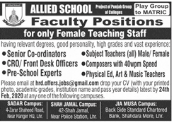 Jobs in Allied School Lahore Female Teaching Staff Required