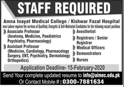 Jobs in Amna Inayat Medical College Staff Required