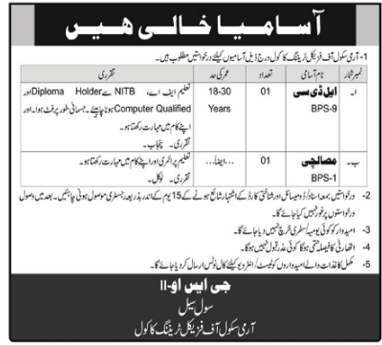 Jobs in Army School of Physical Training Kakol Positions Vacant
