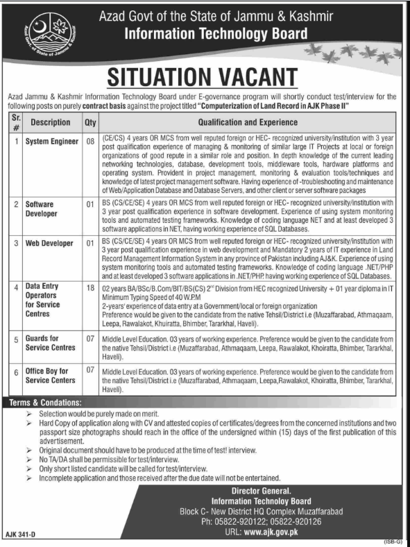 Jobs in Azad jammu and Kashmir Information Technology Board Muzafarabad Situations Vacant