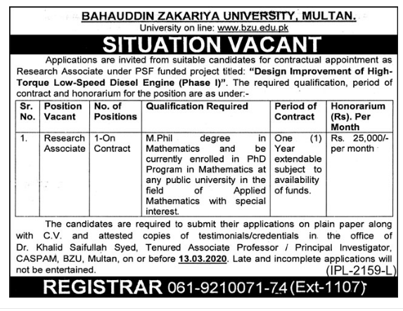 Jobs in Bahauddin Zakariya University Multan Positions Vacant