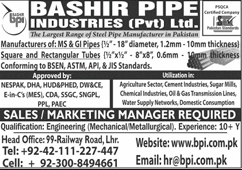 Jobs in Bashir Pipe Industry Pvt Ltd Staff Required