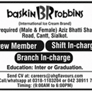 Jobs in baskin BR robbins Staff Required