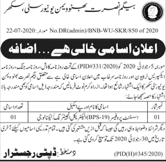 Job in Begum Nusrat Bhutto Women University Position Vacant