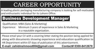 Business Development Manager Career Opportunity