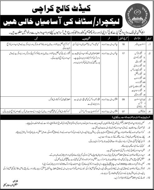 Jobs in Cadet College Karachi Positions Vacant