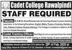 Jobs in Cadet College Rawalpindi Positions Vacant