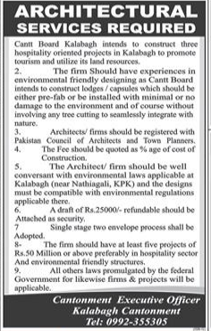 Job in Cantt Board Kalabagh Position Vacant for architect