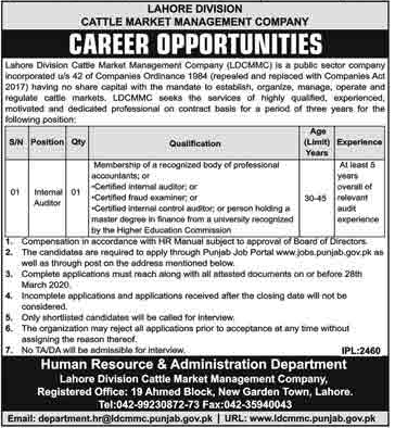 Job in Cattle Market Management Company Lahore Career Opportunity
