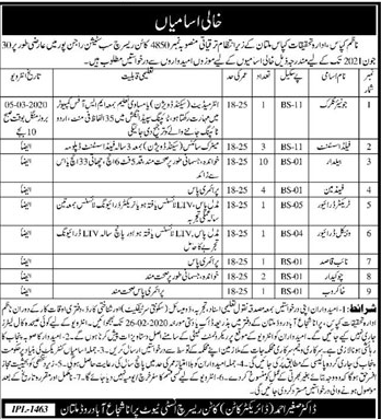 Jobs in Central Cotton Research Institute Multan Positions Vacant