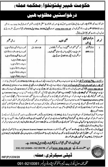 Job in CIVIL SECRETARIAT PESHAWAR Position Vacant
